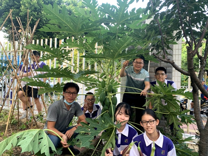 在校园东西角上有一景致优美,绿意盎然的“农业庄园”——劳动教育种植实践基地,热闹非凡,各班种植小组的学生们在劳动教育实践指导老师的指导下,锄地、除草、浇水、施肥、捡落叶、精心养护着本班的种植基地,有的采摘蔬菜或瓜果等,收获上学期劳动成果,忙碌并快乐着。其实,平时各班轮值的同学一有时间就会走进种植实践基地,或浇水,或松土,或捉虫,隔三差五地施施肥。或者什么也不做,只是站立基地一角,看勤劳的蜜蜂在花叶间飞舞、采蜜,听不知名的昆虫藏身何处清幽地鸣唱。清新的泥土气息,淡雅的蔬菜清香,让同学们在感悟劳动中的美,体验劳动的乐趣。