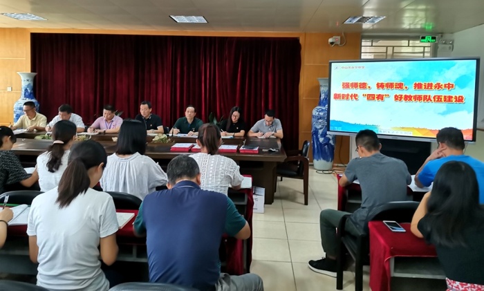 2020年9月21日下午,永宁中学在学校教师会议室举行了全校教师师德建设主题教育系列活动之一---身边的榜样分享会。活动由陈清茂校长主持,这是继上周开展内强素质、外树形象---永中强师工程启动的专题学习会后又一个师德建设主题教育活动。