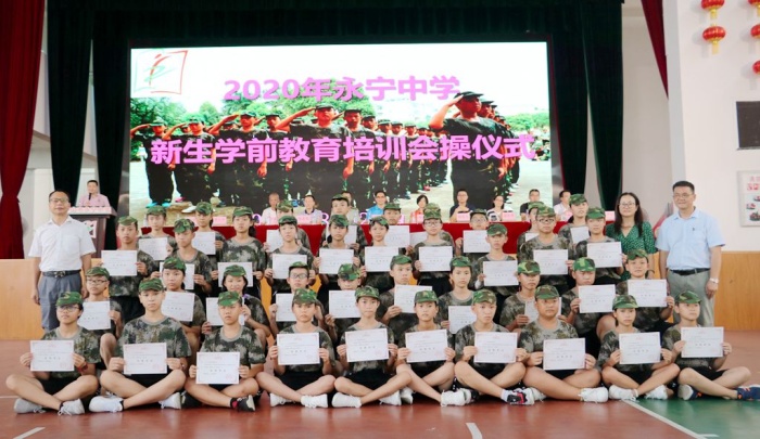 8月26日下午,艳阳当空,空气中弥漫着火热的气息。一群身着迷彩服、朝气蓬勃又带着稚嫩的身影出现在永宁中学美丽的校园里。新一届的初一学生正在这里开展学前教育。在三天的学前教育当中,初一新生分别进行了军姿站立、队列行进、停止间转法、呼喊口号等训练。