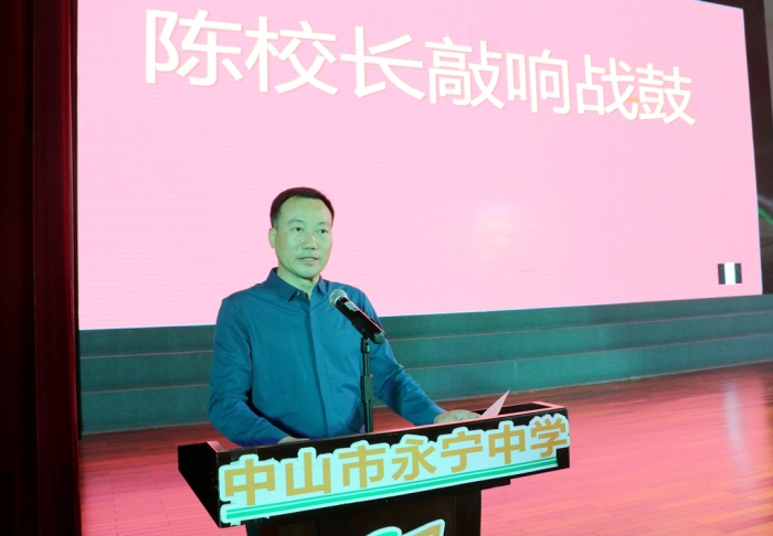 第一篇章,战鼓响。陈清茂校长敲响战鼓并做了振奋人心的动员讲话,他鼓励学生要奋勇拼搏、不抱怨,一切皆有可能,一切皆在拼搏,拼搏能改变很多,亦能收获很多。同时送给同学们三句话:明确中考目标、勤奋是成就梦想的基石、敢于竞争、勇于挑战、积极应战,为永中学子们指引中考奋斗努力前行的方向。