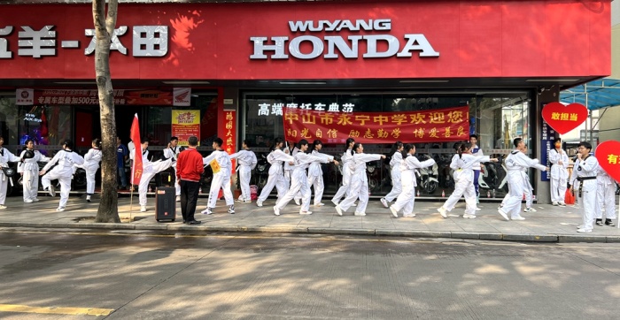 中山市永宁中学116名师生共组建了三支队伍参加了小榄镇2023年慈善万人行活动。