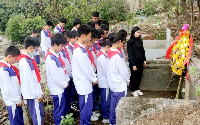风儿声声,松涛阵阵,说不尽对家乡先贤的无限深情,道不尽对家乡先贤的无尽哀思。为缅怀家乡先贤,继承先贤的光荣传统,弘扬爱乡爱国主义精神,2023年4月4日下午,永宁中学陈清茂校长、德育处戴放良主任、罗结晶副主任、初一年级级长何健君老师、团委陈焕然副书记、范顺登委员、钟燕老师以及初一年级各班少先队员代表近60人前往永宁大榄岗,为永宁乡前党支部书记李汉章先生和永宁中学名誉校长麦克贞先生扫墓。