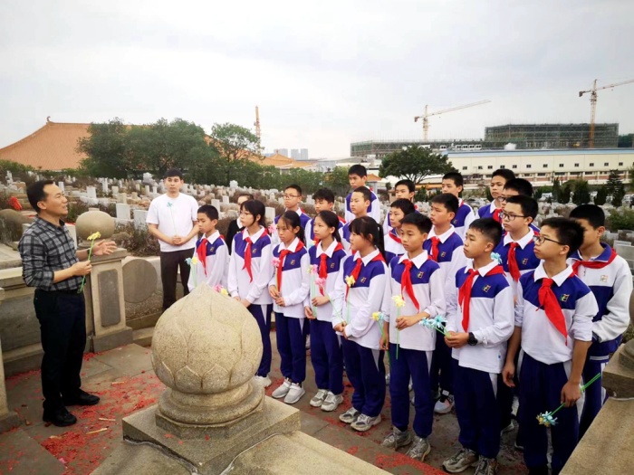 活动分为两小组,第一小组由陈清茂校长带队前往永宁中学名誉校长麦克贞先生的墓前。麦克贞先生热心家乡建设,投资兴办厂企,重视教育公益福利事业,先后捐资五百多万港元,重建了永宁中学、小榄中学、永康小学、永宁小学、小榄医院、永宁影剧院;为鼓励师生努力工作、勤奋学习,麦先生创设了奖教教学基金会。投资1660万港元与永宁兴办永大胶粘制品有限公司等工厂,为繁荣家乡经济作出了重大贡献。1984年,麦先生被中山市教育局礼聘为永宁中学的荣誉校长。同学们首先献上了花圈,瞻仰墓碑。接着,陈校长介绍了麦克贞先生事业有成回报家乡的一片爱心,勉励少先队员们要珍惜今天来之不易的幸福生活和良好的学习环境,刻苦学习奋发成才,努力成长为德智体美劳全面发展的社会主义建设者和接班人。