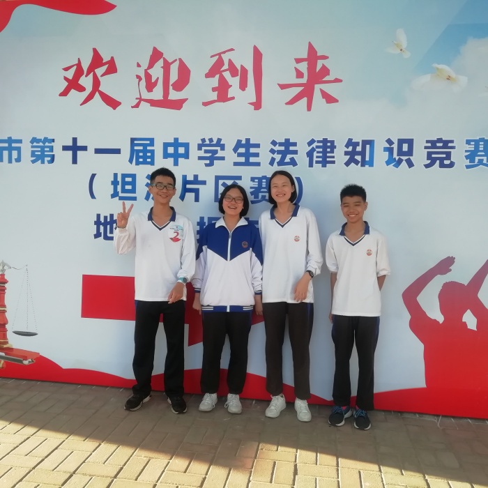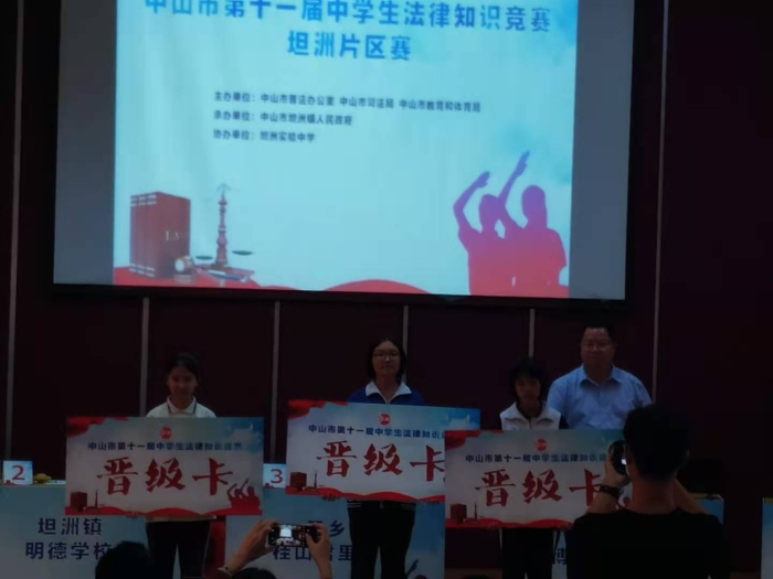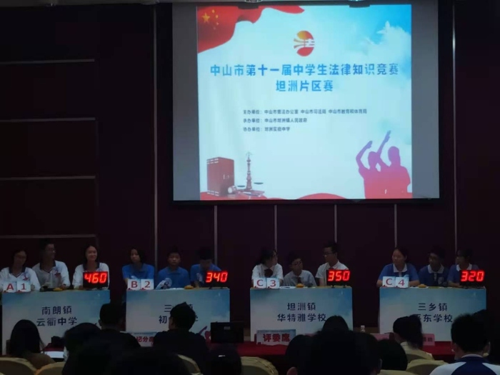 11月18日下午,经过学校、南朗镇法律知识竞赛选拔胜出的初二12班代表队(陈梓琪、邓紫轩丶邓增迎、何鸿辉)代表南朗镇到中山市坦洲实验中学参加中山市法律知识竞赛南部片区赛。