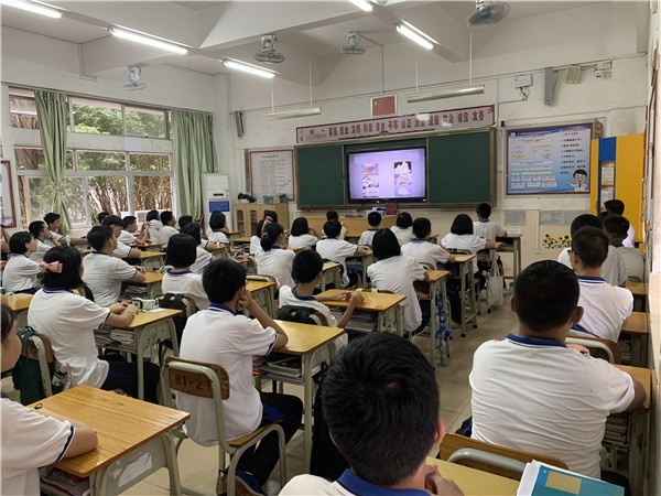 为进一步提高广大青少年抵制毒品侵害的能力,积极推进禁毒宣传教育进校园工作,9月14日下午,南朗镇云衢中学开展了一场禁毒教育专题讲座,全校各班班主任组织学生在教室通过校园电视台观看此次讲座。讲座由中山市公安局禁毒支队高警官主讲。中山市臻善社会工作服务社社工也来到该校协助开展此次禁毒宣传活动。