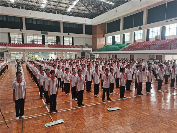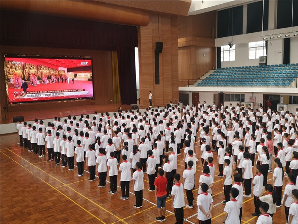 活动在雄壮的国歌声中拉开了序幕,首先该校刘毛古副校长做了讲话,回顾了那段峥嵘岁月,面对侵略者,中华儿女不屈不挠、浴血奋战,彻底打败了日本军国主义侵略者,捍卫了人类和平事业。为了纪念抗战胜利,确定每年9月3日为中国人民抗日战争胜利纪念日。他呼吁同学们要铭记历史,不忘国耻,努力学习,掌握更多的知识和技能,守护祖国母亲不受侵害,传承红色基因,争做时代新人,为实现中华民族伟大复兴的中国梦而努力读书。