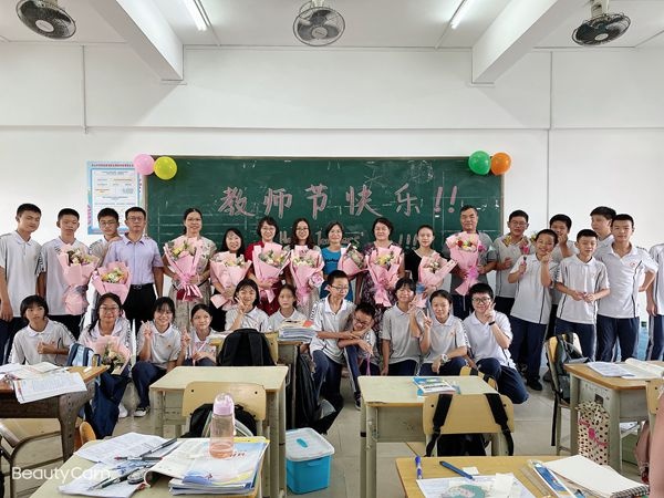 为弘扬中华民族尊师重教的传统美德,由学校德育处、团委牵头开展“三尺讲坛书写粉墨卓山·一颗丹心一生秉烛铸魂”教师节主题教育活动。每个班级班委策划一次简单而隆重的活动,在教师节里为敬爱的老师献上自己真诚的祝福。在老师们的办公室里可谓热闹非凡,只见各班的同学们手拿着自己早已准备好的鲜花与小礼物纷纷送给自己的老师,一声又一声的“老师,您辛苦了,谢谢你,祝您节日快乐!”在整个办公室里回荡,场面温馨而感人,让老师们十分感动。许多老师在收到学生送给自己的鲜花与礼物时都十分高兴,脸上都露出了灿烂的笑容。自己也情不自禁的拍拍学生的肩膀,对学生的祝福表示感谢,师生情感真情流露。在课堂上同学们也利用多媒体平台为老师送上祝福,送上节日的慰问,场面温馨而让人感动。
