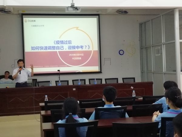 面对疫情防控以及中考备考这一特殊时期,为了帮助学生们更好的适应疫情下的校园生活,促进其身心健康成长,5月4日下午,卓山中学开展了初三学生心理健康讲座活动。此次心理讲座,由陆运贵副校长主持。穆广宏校长和德育处汤燕飞主任出席。根据疫情期间安全距离的要求,讲座共设主会场和教室直播分会场。讲座特别邀请了国家心理咨询师刘秀银老师主讲,刘老师以“疫情过后,如何快速调整自己,迎接中考”为主题,对已返校的初三学生进行疫后返校复学心理辅导。