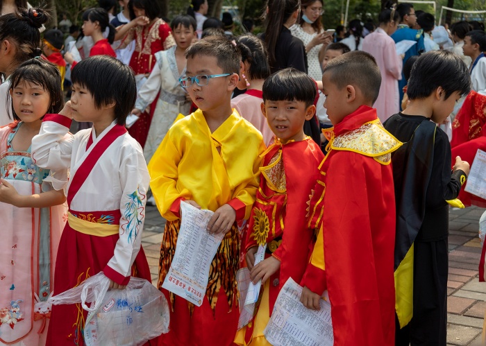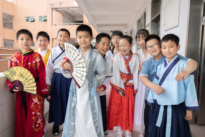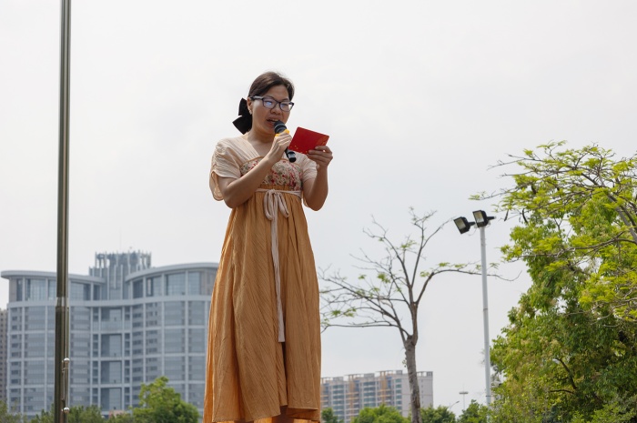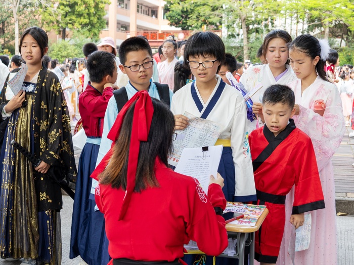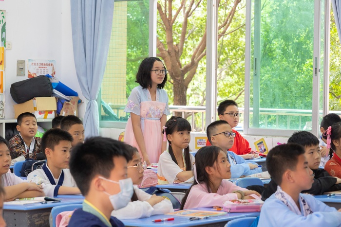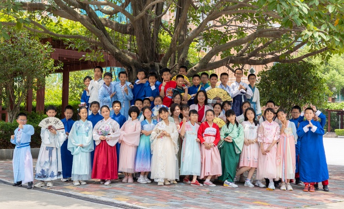 秦筝玉柱扬清曲,衣袂翩跹入校园。同学们蓬勃朝气的脸庞更加明媚耀眼。踏着清悠的阳光,汉服文化节启动仪式在小学部校长李园萍的精彩致辞中拉开序幕。她希望通过本次汉服节活动让同学们感受传统服饰之美,接受传统文化洗礼,传承华夏民族精神。