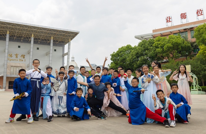 绣华服展活力,悠悠古曲动人心。古朴典雅的曲子回荡在校园上空,同学们衣袖翻飞、翩若惊鸿,伴着音乐起舞,矫健轻灵的动作显示出卓雅少年昂扬向上的精神面貌。一首首婉转动听的古风歌曲,如轻柔的春风在同学们耳畔飘过。偶遇同学,典雅的传统“揖礼”更增进了同窗情谊。