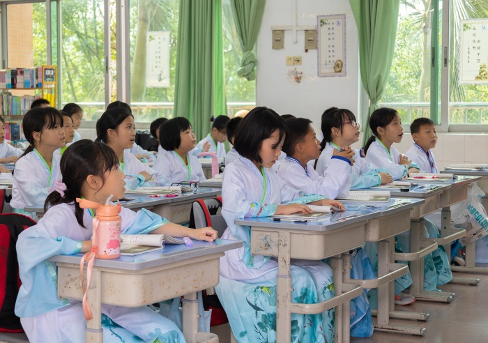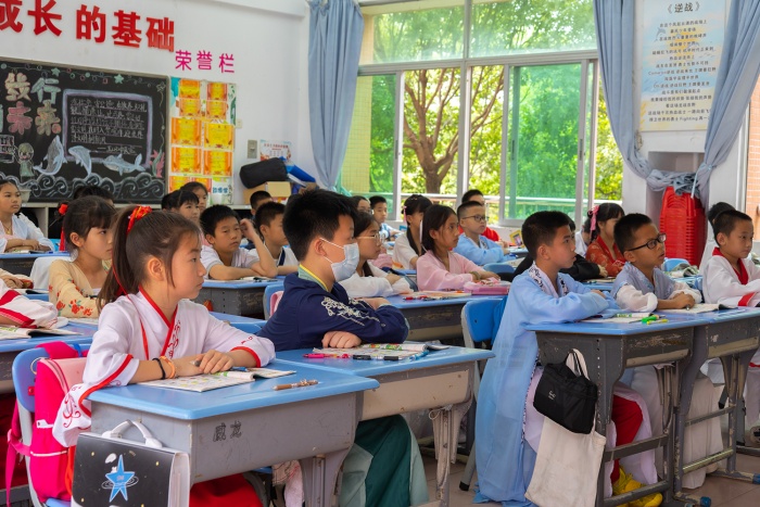 传统礼节感师恩,古韵悠然新课程。同学们身穿古衣,感受中华传统文化的博大精深,从经典中汲取民族精神的源头活水,获得古圣先贤的智慧之光,培养仁义敦厚的性情。