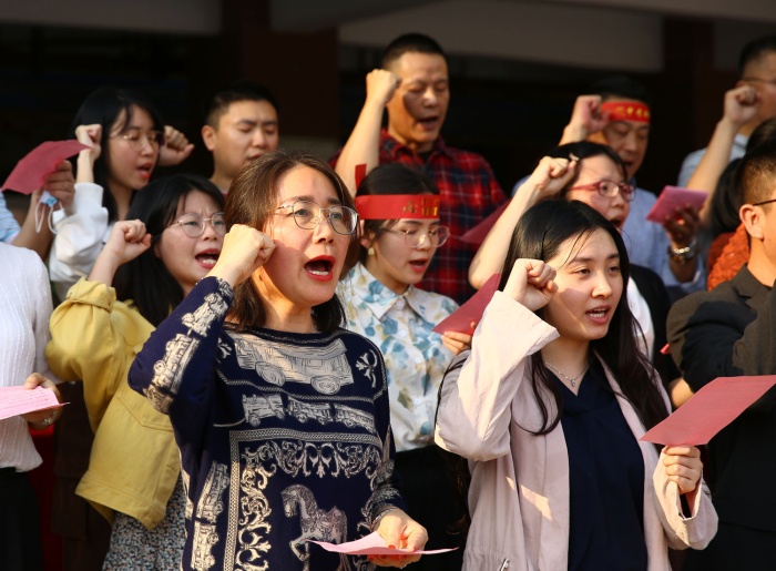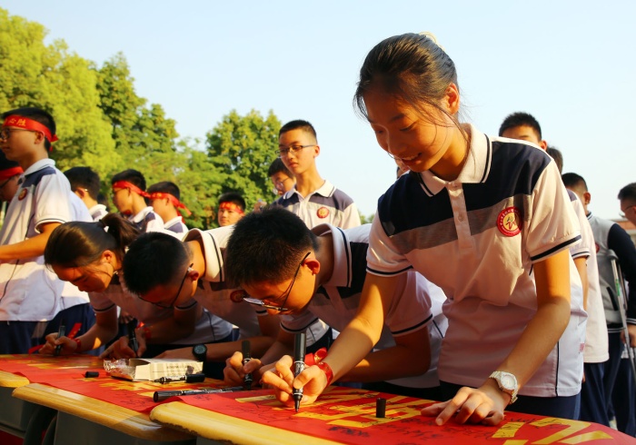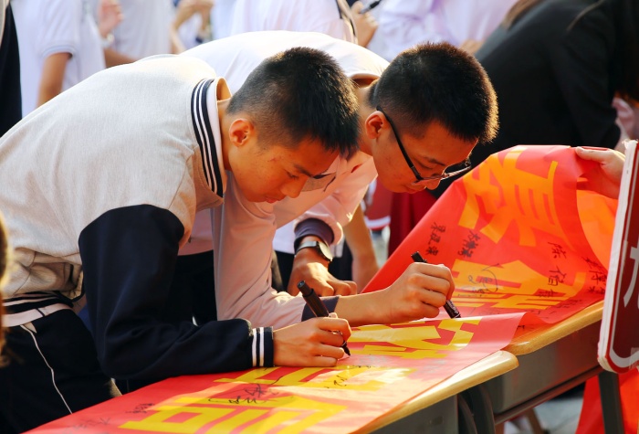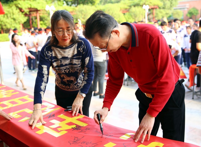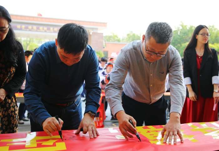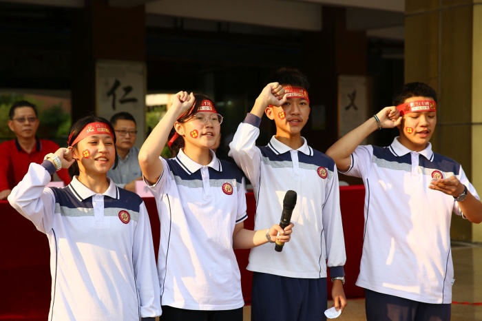 “决战中考,六月必胜!”“争分夺秒,再创辉煌……”4月6日下午,初中部举行2022届中考动员大会,九年级全体师生、学校领导握拳宣誓,在中考加油横幅上签名立志,向80天后的中考发起冲刺。卓雅外校党支部书记龙起达、校长李雄杰、副校长兼初中部校长李文、初中部副校长韩瑞云等领导出席活动。