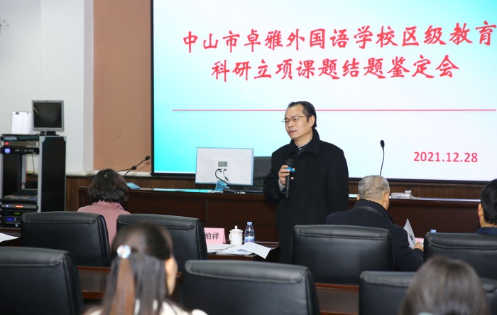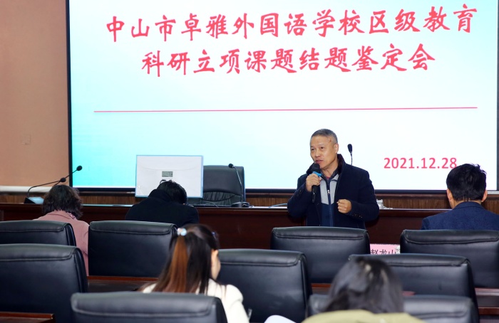 12月28日下午,中山市卓雅外国语学校召开区级教育科研立项课题结题鉴定会,特邀中山市教师发展中心教授赵龙山、中山市教研室教研员张泰刚、开发区教育事务指导中心教研员谢柏祥,对卓雅外校4个区级课题进行鉴定。学校副校长兼小学部校长李园萍、初中部副校长韩瑞云出席会议,学校教务助理范秀华主持鉴定会。