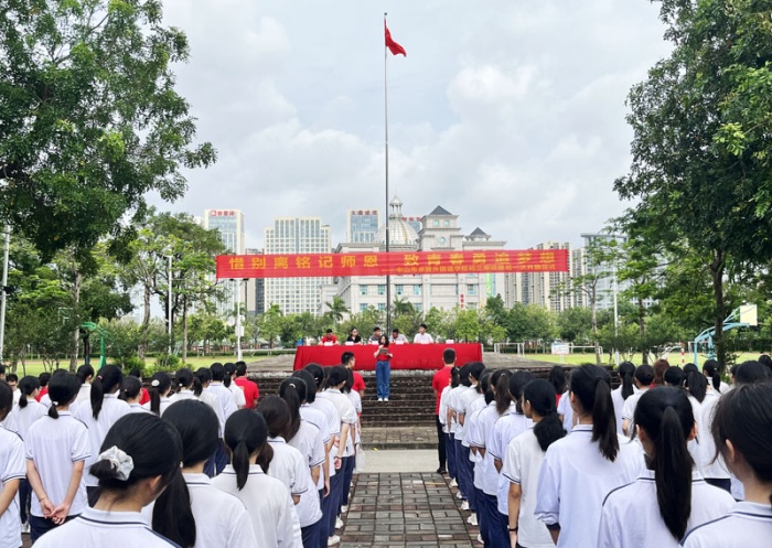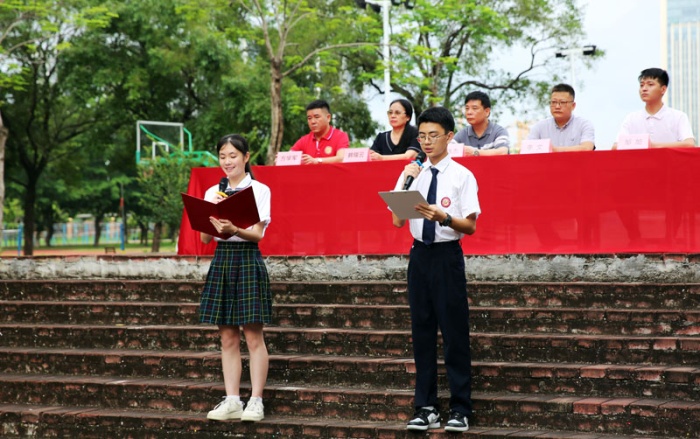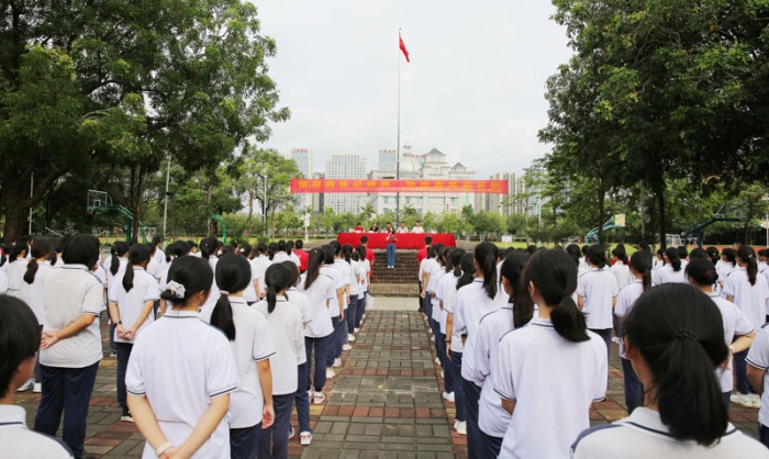 卓雅外校校长李雄杰、副校长兼初中部校长李文、初中部副校长韩瑞云、艺体中心主任方学军、初中部学生处主任邹旭、团委书记李凌霄及初中部全体师生参加升旗仪式。