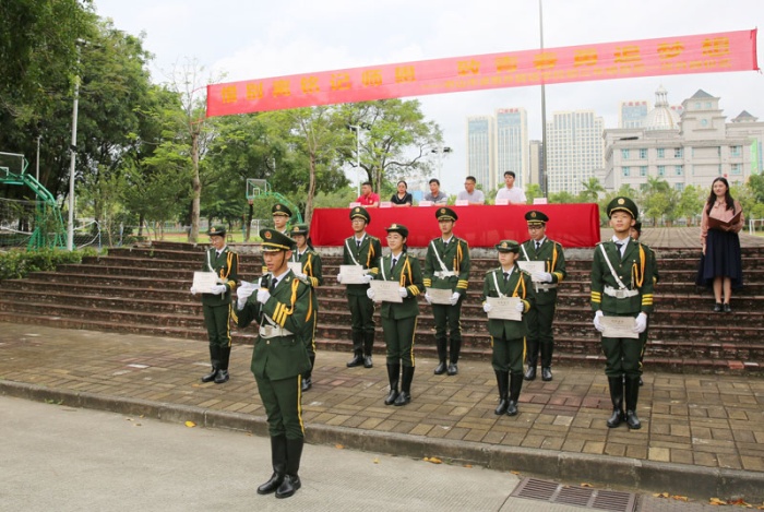 仪式还表彰了成功完成升旗任务的11名九年级校国旗队队员,校长李雄杰为同学们颁发荣誉证书,为圆满完成国旗队训练任务的许光辉安全主管颁发荣誉证书,向他们的辛苦付出表示感谢。