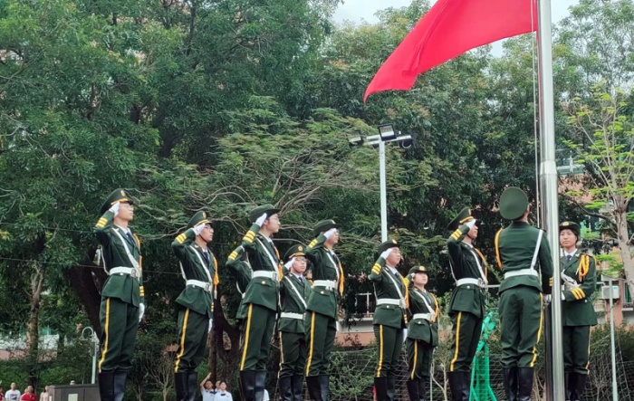 伴随着清晨的第一缕阳光,升旗仪式正式开始,卓雅外校国旗队11名队员步伐慷锵,在雄壮的《义勇军进行曲》中,鲜艳的五星红旗冉冉升起。
