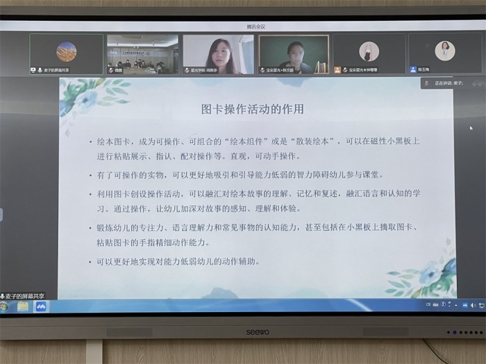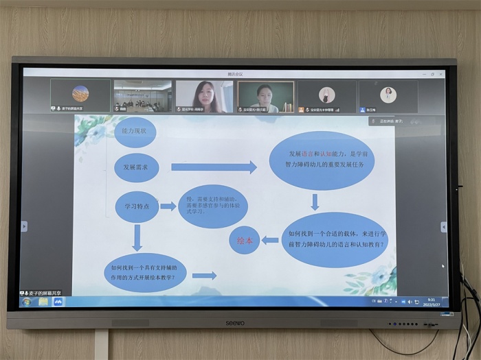 为更快更好推进广东省特殊教育精品课程建设项目《“我与祖国共成长”绘本阅读与活动课程》的实施,3月27日上午,中山特校项目组邀请西南大学江小英副教授以及潮州市潮安区育智学校、佛山市启聪学校、深圳市宝安区星光学校和中山市南朗镇云衢小学的教师代表开展了“我和学生的共读故事”线上研讨活动,本次活动由中山特校教研室何妮娜主任主持。