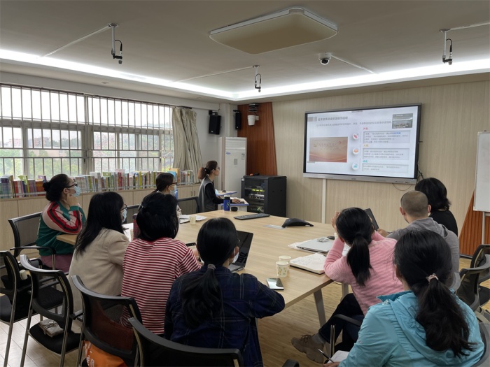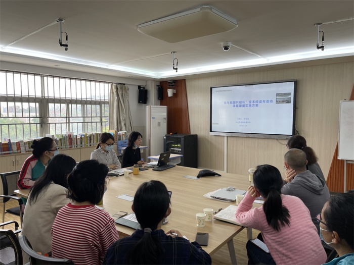 随后,项目组负责人中山特校陈玉梅老师对省精品课程项目《“我与祖国共成长”绘本阅读与活动课程》的实施方案进行了介绍。陈老师从背景、课程概述、课程总目标、课程内容等九大方面做了全面、具体、细致的解说,明确了各合作学校的职责任务,为项目的推进打下了坚实基础。
