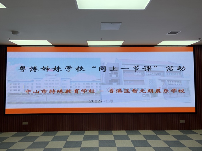 冬日暖阳播撒温情,湾区特校携手共育。新年伊始,一场别开生面的粤港姊妹学校线上交流活动,在中山市特殊教育学校和香港匡智元朗晨乐学校间展开。经过两校前期积极沟通,本次线上交流选择用“同上一节课”的形式促进两校师生交流。