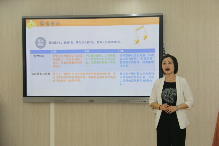 各校落实差异教学的经验分享环节,佛山市顺德区启智学校的分层次课程目标和课程体系、苏州工业园区仁爱学校“仁者爱人,圆融创新”的办学理念、深圳元平特殊教育学校以人为本的差异化教学模式、中山市特殊教育学校对IEP进程过程研讨和资源库建设的重点关注、上海市浦东新区辅读学校的项目化教学实践、南京市秦淮特殊教育学校的“适性教育”、广州市越秀区启智学校“分层分组、精准康复”的课堂特色……各学校的教学行动亮点纷呈,让人印象深刻,具有很好的启发性。