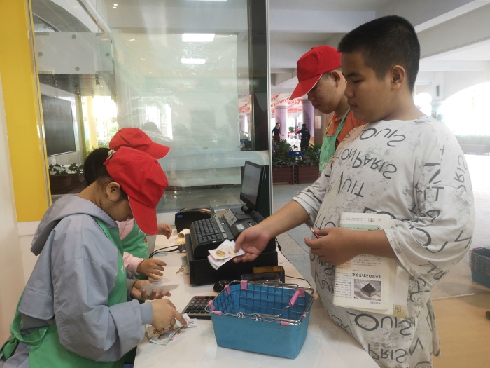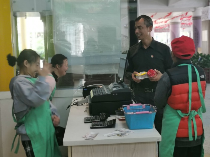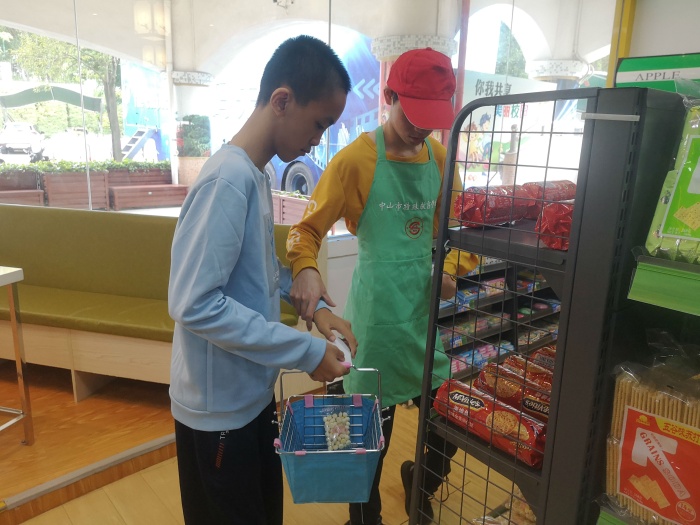 经过近两个月的积极筹备,中山特校“博爱超市”于10月26日再次开业。培高7名学生走上岗位,迎接首批“顾客”。正式开业之前,老师对即将上岗的学生进行嘱咐,亲切地提醒学生注意礼貌和仪容仪表,以最好的精神面貌迎来生意“开门红”。