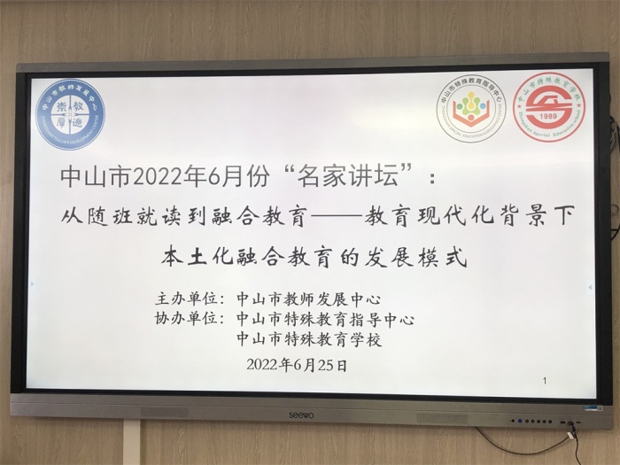 为深入贯彻落实《中共中央国务院关于全面深化新时代教师队伍建设改革的意见》,提升中山市中小幼教师专业能力,造就高素质教师队伍,6月25日上午,全市中小学幼儿园教师6月“名家讲坛”(总第167期)专题培训如期开展。培训由中山市教师发展中心主办,中山市特殊教育指导中心和中山市特殊教育学校协办。