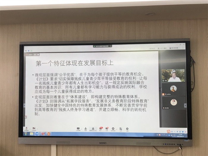 培训中,邓教授还对《教育部关于加强残疾儿童少年义务教育阶段随班就读工作的指导意见》和《国务院办公厅关于转发教育部等部门“十四五”特殊教育发展提升行动计划的通知》2份重要文件的要点进行了解读,对接下来融合教育的发展目标、实施策略、支持体系以及师资培训、科学评估、资源中心(教室)建设进行了具体说明,让老师们对国家融合教育相关政策及发展走向有一个总体把握。在讲到动情处时,邓教授呼吁普校随班就读教师多理解和支持特殊教育,通过普特融合和相互支持,切实保障残疾儿童青少年平等接受教育的权利,做到有教无类、因材施教,帮助他们共享发展成果,让其一样享人生出彩机会。在培训的最后环节,并对老师们提出的问题和疑惑进行解答,为老师们指点迷津、智慧引路,让老师们如沐春风、豁然开朗。