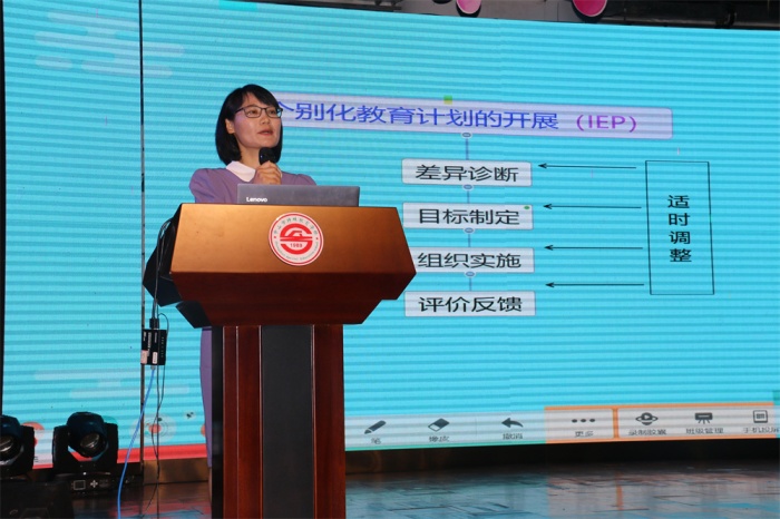 朱建美老师分享了她在IEP工作中的实践心得。她指出,思想上的转变很重要,要从优势视角出发,而非问题视角,更多关注学生的优势和潜能。她从差异诊断、目标制订、组织实施、评价反馈等四个方面进行详细阐述,并提出了推行导生制、同伴协助、落实差异教学等策略,分享了自己在生活适应和劳动技能课上运用园艺疗法进行的新探索。内容充实有质量,老师们获益匪浅。