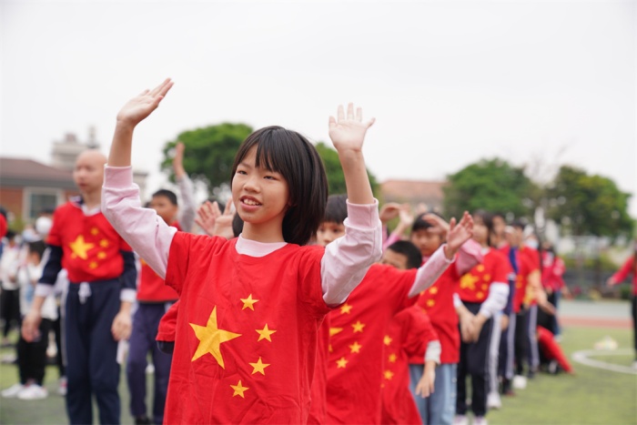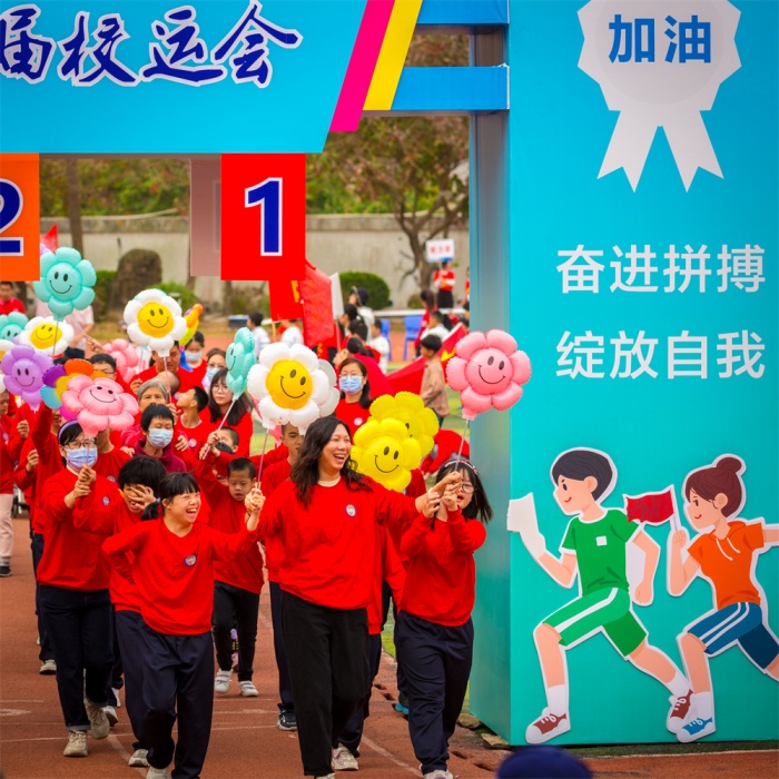 入场式上,各年级进行创意编导,融入喜庆元素,传承红色基因,厚植家国情怀。师生或手执花环,或挥舞彩带,或身着盛装,或高举标牌,喊出了铿锵有力的气势,舞出了奋进新时代的风采。