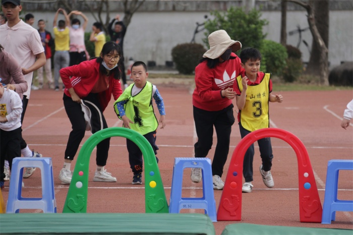 比赛过程紧张而激烈,跨越障碍的身影随处可见,精彩纷呈的场面一幕幕上演,全场掌声、加油声、欢呼声此起彼伏,校园里到处洋溢着温馨和幸福,传递着快乐和自信,充满着阳光和活力。灿烂阳光下,孩子们奋进拼搏的汗水折射成一个个七彩的光环。