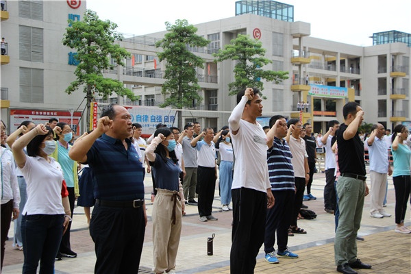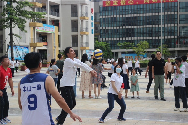 为庆祝中国共产党成立99周年,引导全体党员干部不忘初心、牢记使命,充分发挥党组织的政治核心作用和党员的先锋模范作用,7月1日下午,中山一职组织全体党员在升旗广场举行庆祝中国共产党成立99周年之“党建引领,凝心聚力”党员排球赛活动。