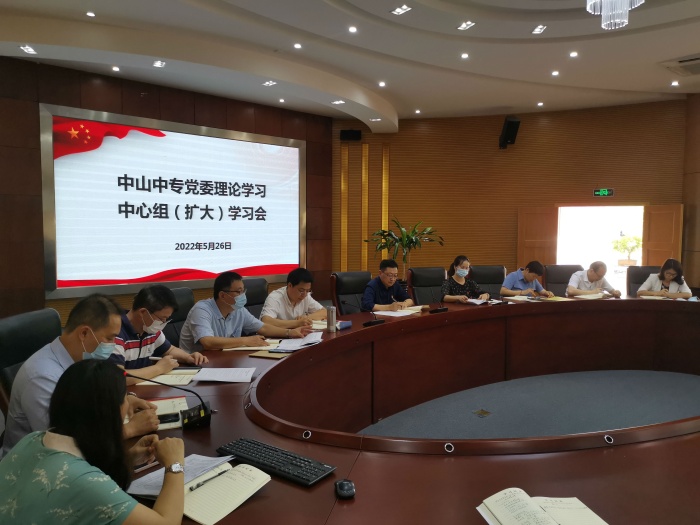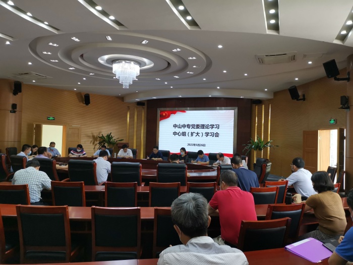 为精准把握国家职业教育工作发展方向,助力学校“双高”建设,按照校党委要求和本学期理论学习工作部署,5月26日,中山中专在行政楼一楼召开党委理论学习中心组(扩大)学习会。党委委员,各部门(工团)正副职,党支部书记(学部主任)、副书记参加此次会议。