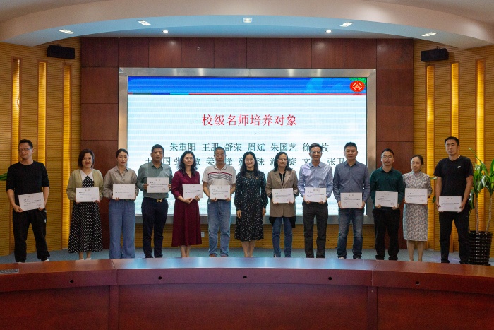 会上,党委委员、行政办主任谢世芳宣布了新一轮名教师系列成员及培养对象名单。据悉,本次名教师系列遴选工作按照学校《“名教师”系列人员遴选工作方案》要求,经个人申报、部门推荐、学校综合评审、党支部支委会讨论审议、党委审议等程序,确定校级名教师工作室主持人7人、名教师培养对象13人、专业带头人培养对象19人、学科带头人培养对象8人、骨干教师培养对象 71人,合计118人。遴选条件突出爱党爱国、师德高尚的政治思想基础,注重一线教学和教研经历,注重指导作用和示范能力,注重教学科研和实践能力。此次名教师系列人数突破了学校历史新高,为学校“双高”建设工作打下了人才基础。