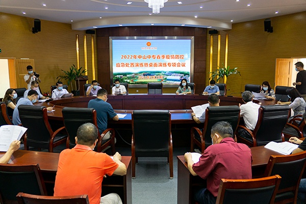 4月26日,中山中专在校本部开展2022年春季疫情防控应急处置演练暨桌面演练工作,中山中专校园疫情防控专班所有成员、21物联1班(化名)及班主任、任课教师参加演练。全体党委委员、校领导参加演练。本次演练由校党委委员、行政办主任谢世芳主持。