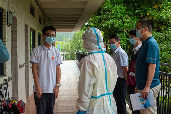 叮铃铃,来自市卫健部门一阵急促的电话声从郁惠慈副校长的桌面响起,……中山中专2022年春季疫情防控应急处置演练紧张有序地得以展开。一时间,在上级卫健部门的指导下,学校党委委员、校园疫情防控专班组联合五桂山属地疾控人员,各部门和学部负责人、校医、班主任、学生紧张有序地“动”了起来。