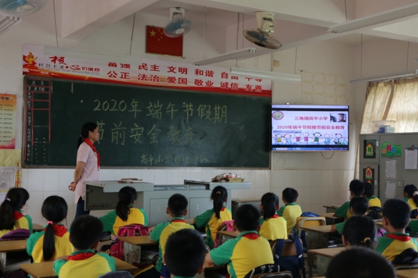 临近端午假期,为进一步加强学校安全教育工作,提高学生的防溺水等安全意识,杜绝各类事故的发生,确保端午节放假期间学生们的人身安全,6月24号下午,三角镇高平小学开展了端午节假期节前安全教育。