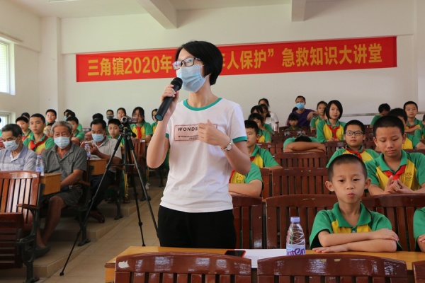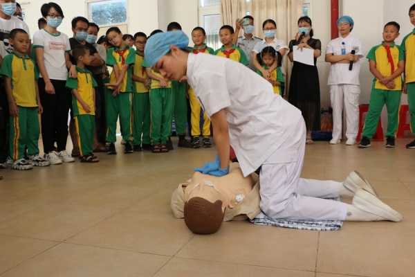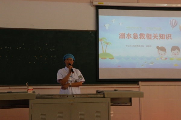 活动中还邀请了三角医院急诊护士长杨惠芬,护士梁晓玲为大家现场讲解急救小知识及演示溺水后的应急救援,家长和同学们也积极参与,一起学习发生事故时如何自救或者救助他人,活动现场气氛热烈。活动最后,全体同学和家长还齐声朗读《防溺水安全知识》,并且在承诺墙上纷纷签名承诺。