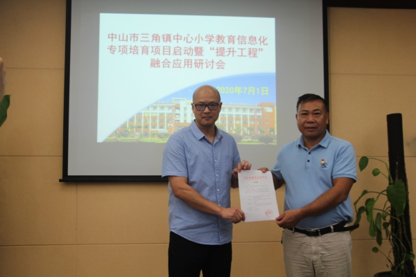 参加本次会议的有中山市教育信息中心吴宇清副主任、李景佳老师;中山市进修学院吴寒冬主任;中山市教育教学研究室刘燕老师;三角镇教育事务指导中心教研员梁文老师;三角镇中心小学周荣纯校长,以及项目组的所有成员。活动的主要安排:1.中山市三角镇中心小学智慧校园示范培育推广项目立项报告。2.项目专家指导与交流。3.项目启动仪式。