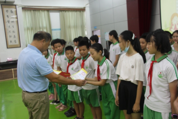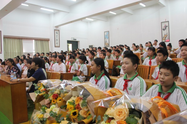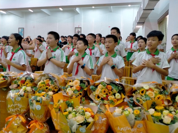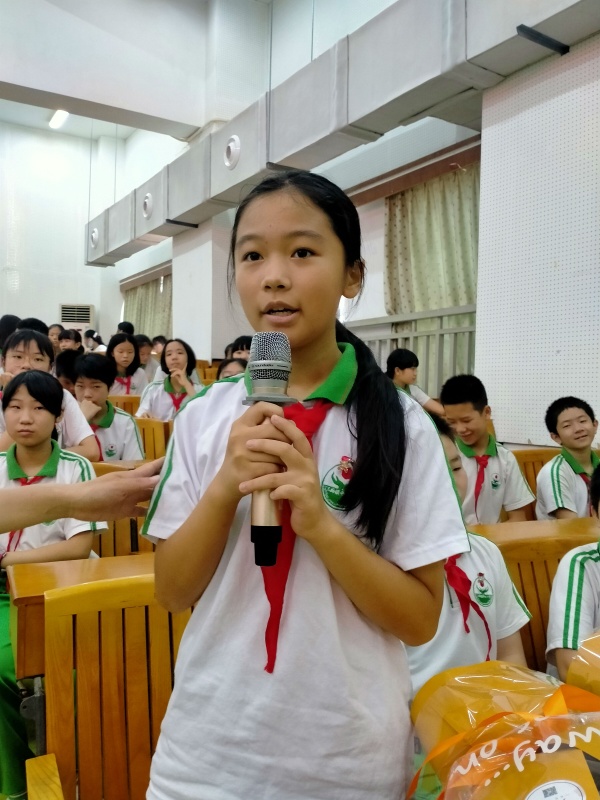 接着,由六(2)班毕业生代表梁碧盈同学讲话。梁碧盈同学跟在场的老师和同学们分享了在中心小学六年的回忆,并对学校老师们的教育之恩充满无限感谢。在场的毕业生们也纷纷对自己的恩师送上最真挚的祝福。