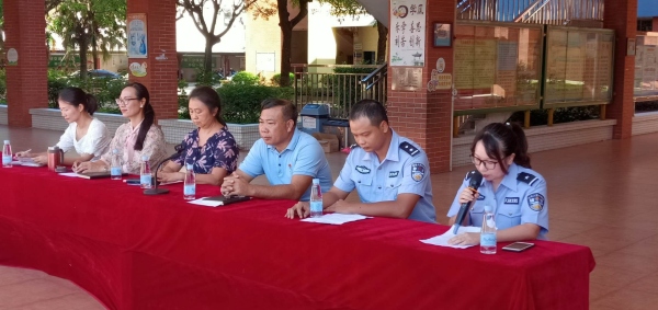 在散学典礼仪式上,公安局的交警阿姨崔警官和法制副校长梁嘉伟分别为同学们宣讲交通安全知识、网络游戏、交友注意事项及相关法制知识;并叮嘱同学们在暑假期间注意交通安全及防溺水安全,加强自我保护意识。