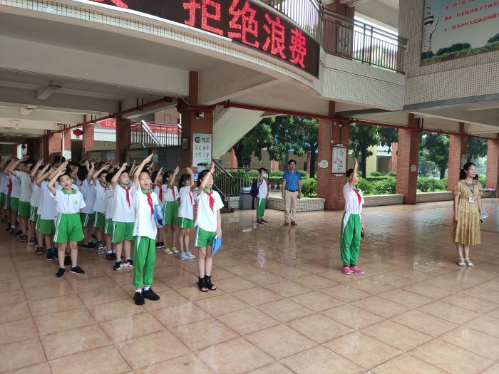 升旗仪式后,六(4)班学生代表作了国旗下讲话,本周国旗下讲话的主题是《珍惜粮食,拒绝浪费》。国旗下讲话中告诫全体同学牢记:节约是美德,节约是品质,节约是责任。