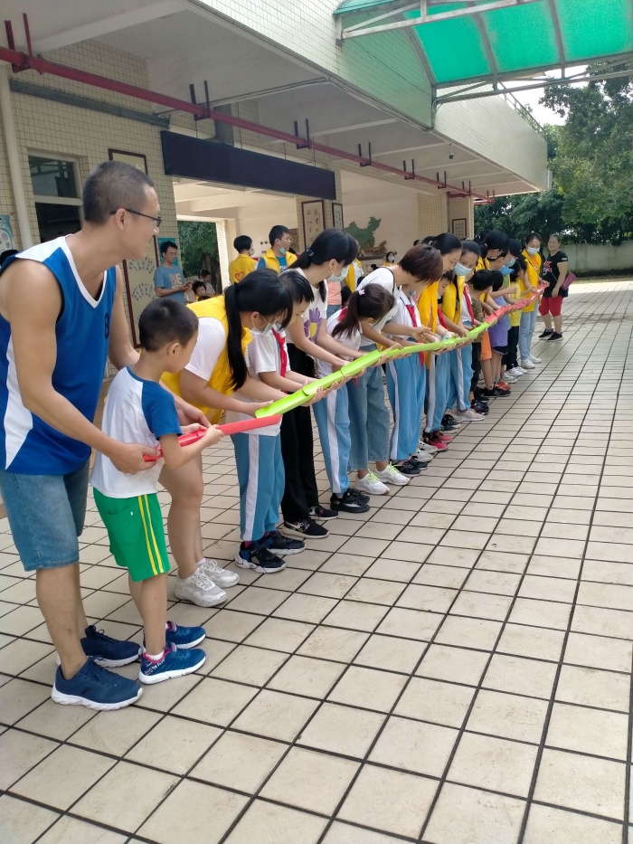 随后,亲子义工们“小手拉大手”,在团队活动中体会垃圾分类,团结协作的好处,“珠行万里”、“无敌风火轮”、“信任背摔”,充满教育意义的团队游戏让大小朋友“玩”在一起,学在一起。