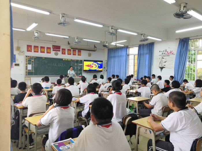 课中班主任纷纷引导学生要勿忘国耻、勇于承担对国家、对社会、对家庭、对他人等所肩负的责任,领会落后就要挨打的历史教训,正视当前现实,反对霸权。勤奋学习,树立报国勤奋之志,练就强身报国本领,用行动践行《中学生守则》,践行社会主义核心价值观。