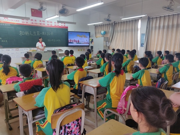 为加强学生对社会主义核心价值观的认知,培育学生正确的价值观,使学生对“扣好人生第一粒扣子”有更加深刻的了解,明白“扣好人生第一粒扣子”的重要性,结合学校实际和学生发展情况,三角镇高平小学于9月16日下午开展“扣好人生第一粒扣子”主题队会活动。