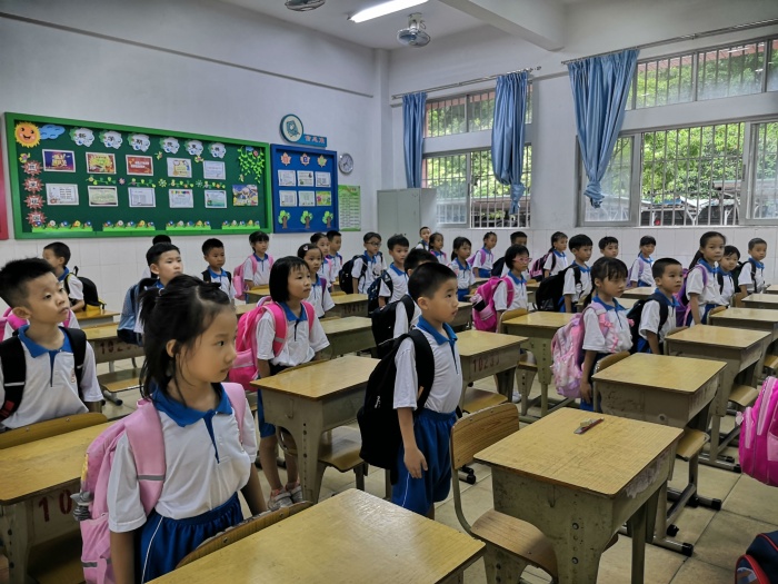 本次比赛分为列队准备、上课准备、班级合唱、整理书包、摆放座椅五项内容。瞧!孩子们早早做好了准备,想要在比赛中大显身手。