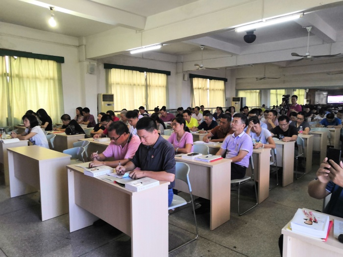 为加强师德师风建设,锤炼一支师德高尚、素质过硬的教师队伍。 9月16日下午,沙栏中学全体教师在和美楼举行了“党建+师德建设”专题培训会。会议由德育处张成斌主任主持。