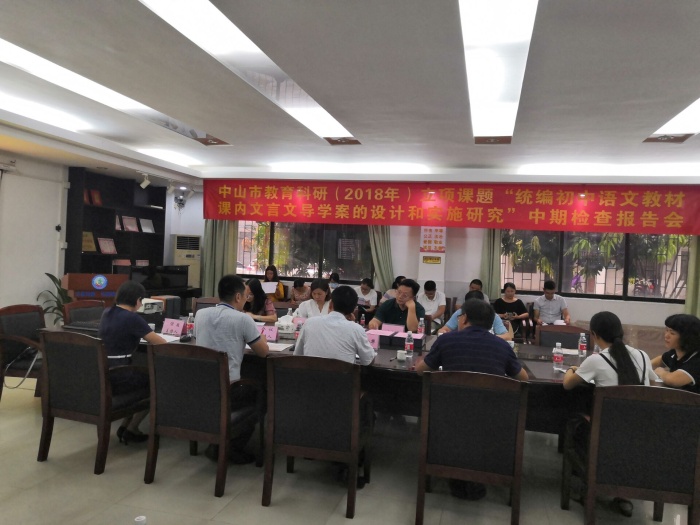 9月15日,沙栏中学教导处在该校接待室召开了中山市教育科研立项课题“统编初中语文教材课内文言文导学案的设计和实施研究”中期检查报告会。参加会议的人员有:中山市教研室张宝华老师、横栏中学刘凌云副校长、溪角中学邓仲萍主任、三角镇教育事务指导中心梁文老师、沙栏中学校长梁炳华、副校长史汉军、以及语文课题组全体成员。会议由沙栏中学教导处副主任陈述陀主持。