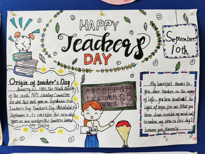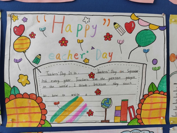 这次英语作品展览收集了五、六年级的手抄报和书法作品,同学们利用周末时间,用自己丰富的想象力,创造了一幅幅五彩缤纷、可爱斑斓的精美作品。五、六年级的孩子正处于爱画,爱想象,爱英语学习的阶段。这样一种形式能够激发学生学习英语的兴趣,积累各种节日文化知识,通过动手动脑,设计构思在纸张上,孩子们更乐于运用阅读和生活中学到的英语,把平时积累的好词好句合理的运用到英语手抄报创作当中,使语言更生动形象,这样就达到了主动查找、看、说、想、写的有机结合。