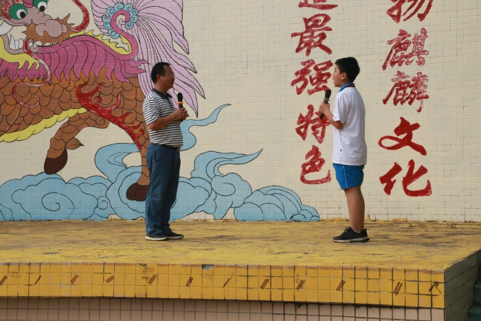 16点,火灾警报声拉响。各班学生在班主任的组织下迅速从课室撤离到走廊,其余老师快速到达指定岗位协助、指挥学生按照指定路线进行撤离。疏散过程中,老师们时刻提醒学生尽量压低身体,捂住口鼻快速、有序地撤离,到达学校空旷大操场的安全地带。接着,各班立即清点人数,并迅速上报给演练总指挥王辉副校长,确保每一位学生都安全撤离。