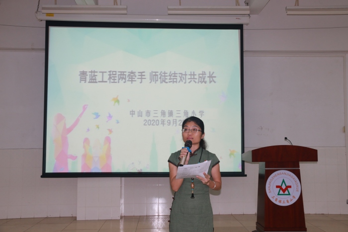 为充分发挥优秀骨干教师的引领作用,帮助新教师尽快适应教育教学工作,促进青年教师尽快成长,进一步提升学校教师队伍的整体素质,9月25日下午,中山市三角镇三角小学在学校阶梯室举行了“青蓝工程”师徒结对仪式。启动仪式由教导处陈宝莹主任主持。